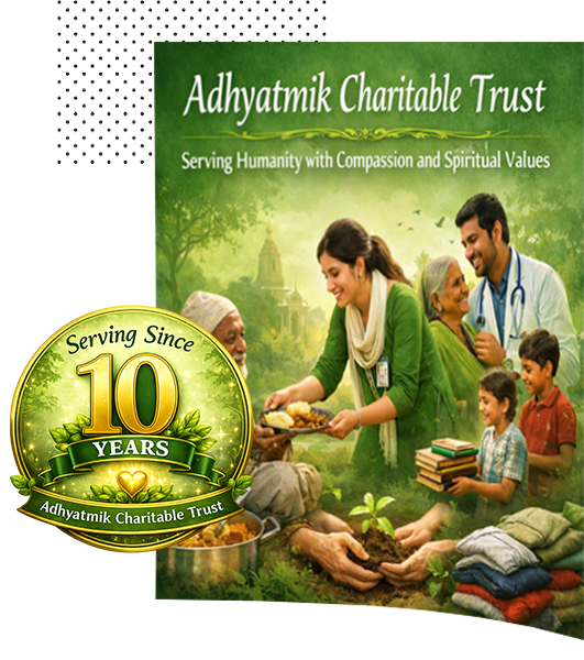 • Adhayatmik Charitable Trust is fully dedicated to the upliftment and holistic development of underprivileged children. We have established Gurukuls where nearly 25 committed teachers are educating over 300 students completely free of cost.